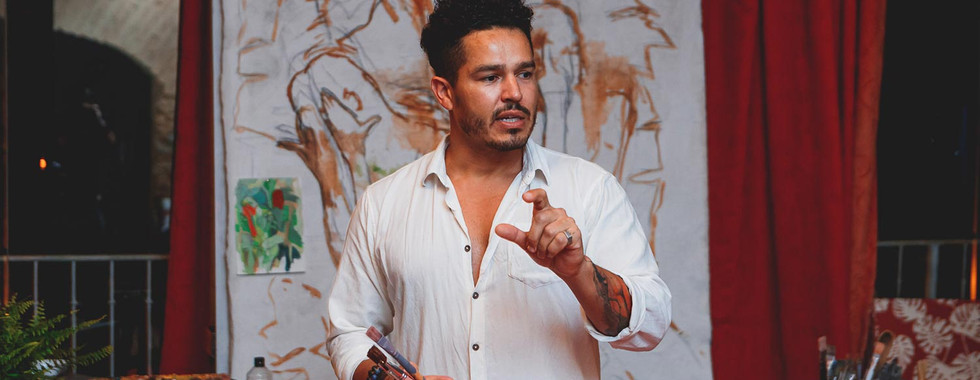 EXPERIÊNCIA DE PINTURA COM MODELO-VIVO DIRIGIDA POR FESSAL DURANTE A EXPOSIÇÃO JARDIM DAS DELÍCIAS